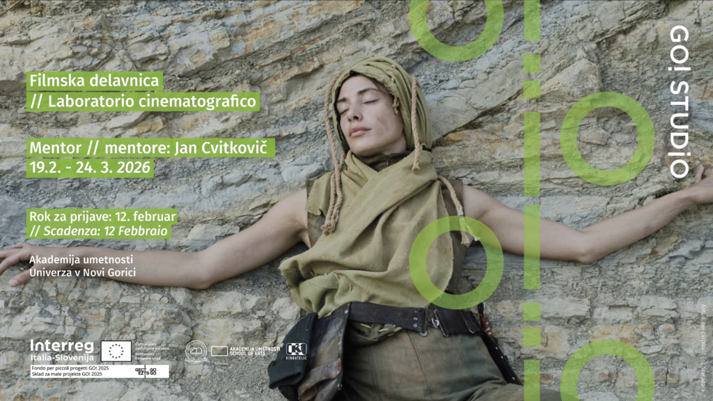 Progetto GO!STUDIO. L’organizzatore della formazione è l’Università di Nova Gorica – Accademia delle Arti. Il progetto è finanziato dai fondi dell’Unione Europea attraverso il Fondo per piccoli progetti nell’ambito del programma GO! 2025 Interreg VI-A Italia-Slovenia 2021-2027, gestito dall’EGTC GO.www.ita-slo.eu // www.euro-go.eu/spf